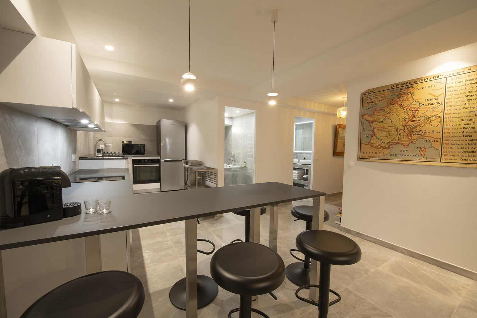 Nous avons choisi avec attention tous les éléments d’ameublement et de décoration pour vous proposer un décor harmonieux et chaleureux. Nous espérons que vous vous y sentirez bien et que vous en prendrez soin pour nous.